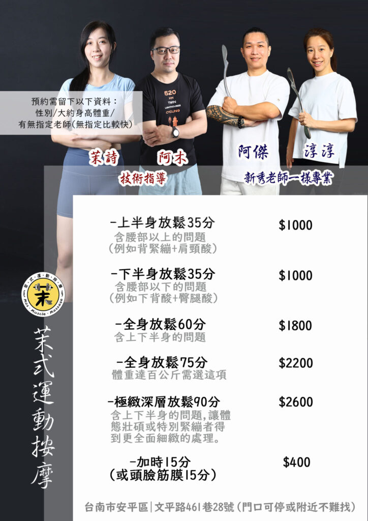 $2600元/90分鐘含上下半身的問題(適合運動愛好、體態特別緊繃者)